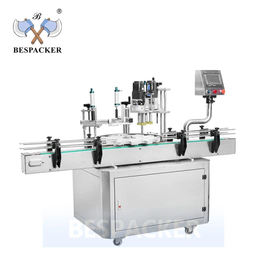 It features a precision piston or volumetric filling system that ensures accurate liquid dosing (±0.5-1% accuracy) for various viscosities. The synchronized screw capping station applies consistent, adjustable torque to securely fasten sprayer pumps and actuators without damaging the bottles or components.