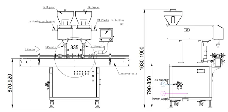 Material size | 00#-5# capsule,Max Φ15mm tablets |